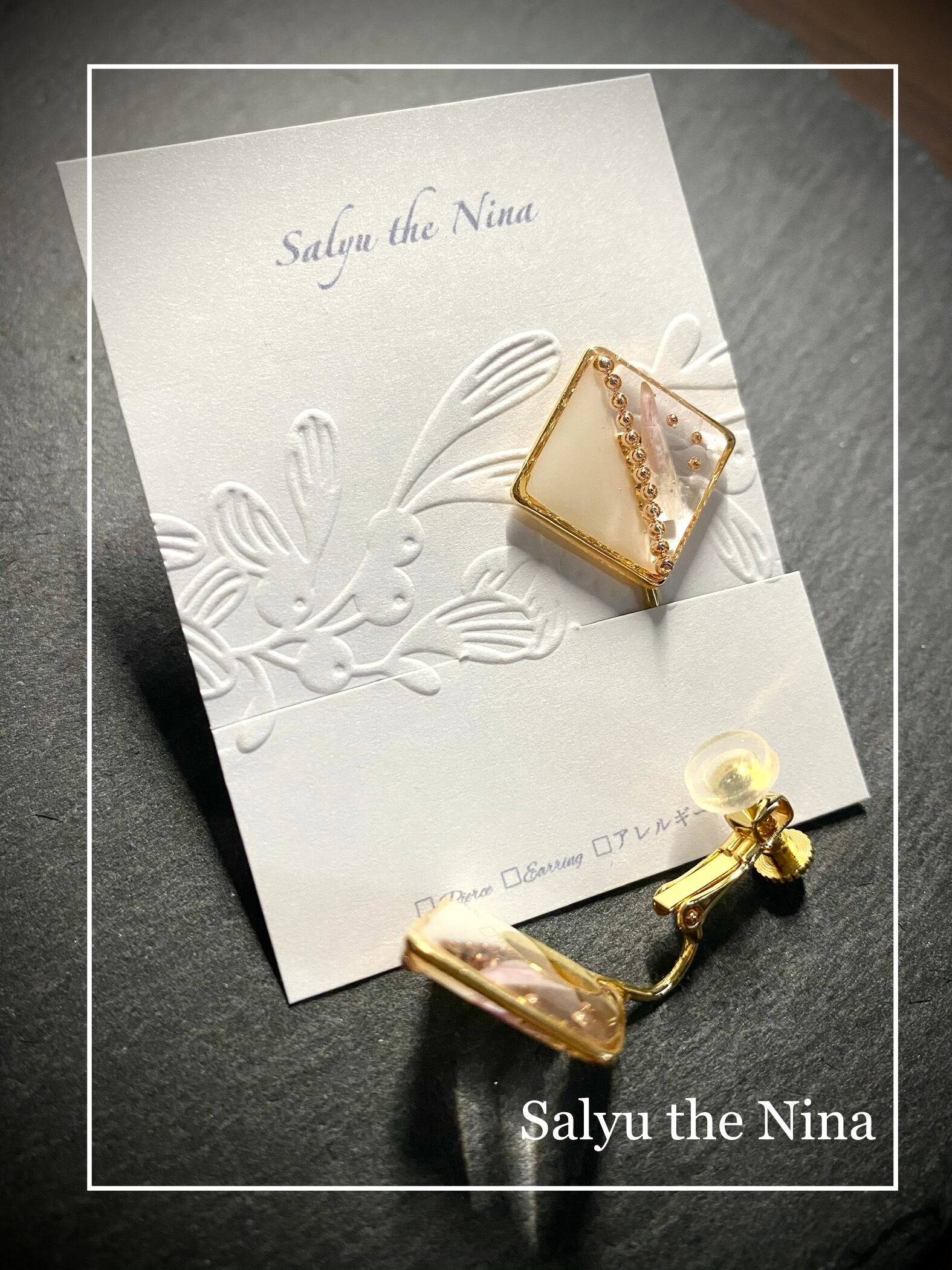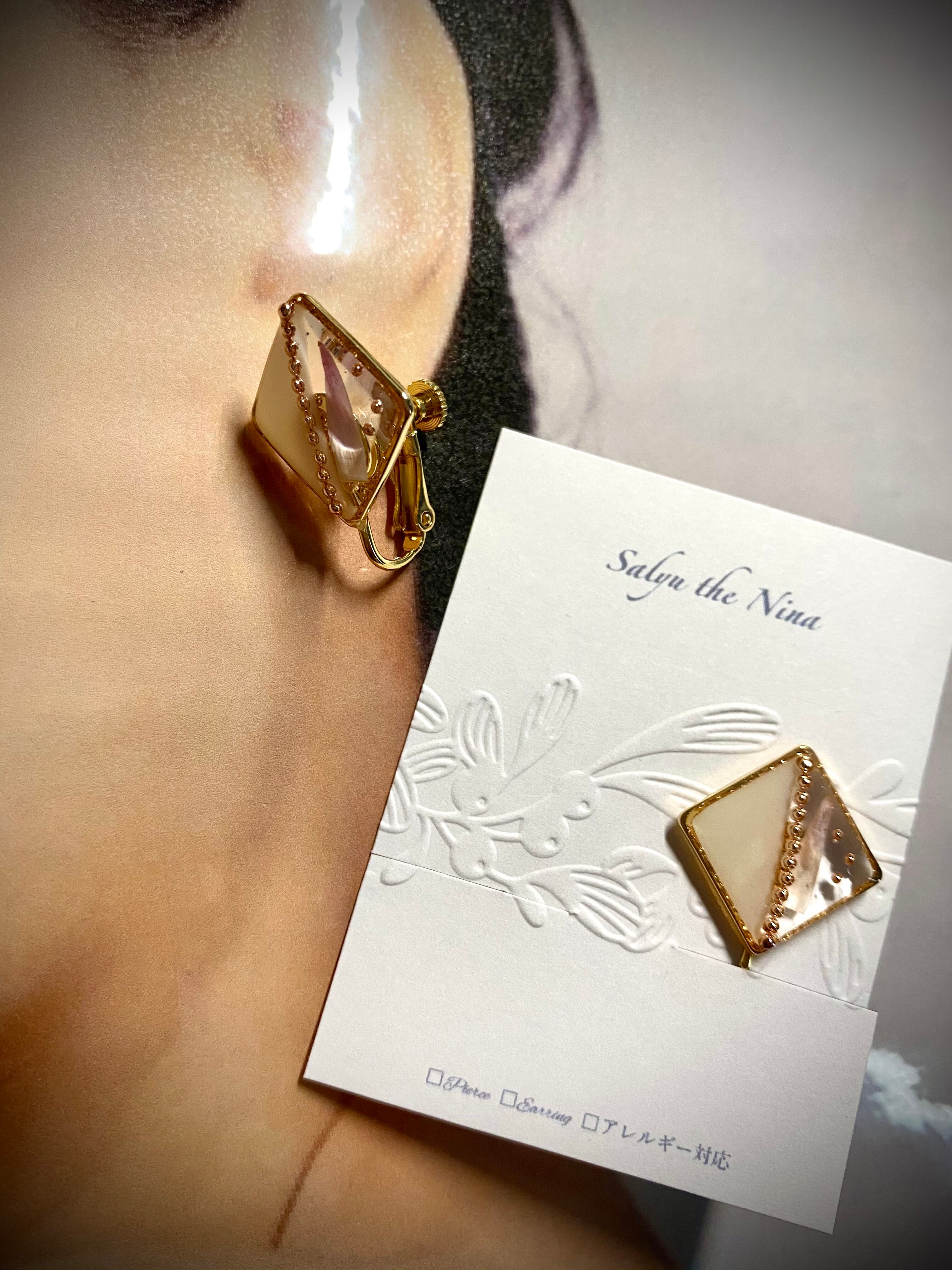 ネジ式クリップイヤリングを採用しています。ニッケルフリー素材なので金属アレルギーがある方でもご使用できます。