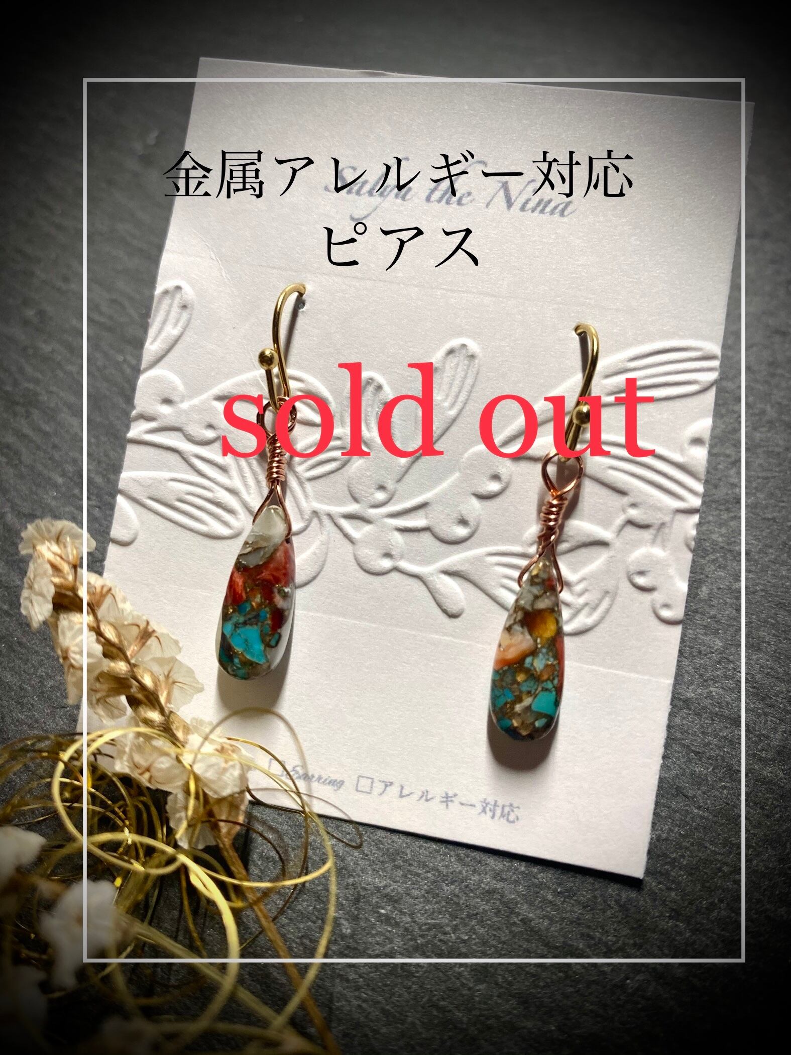 オイスターコッパーターコイズピアスイヤリング 金属アレルギー対応商品