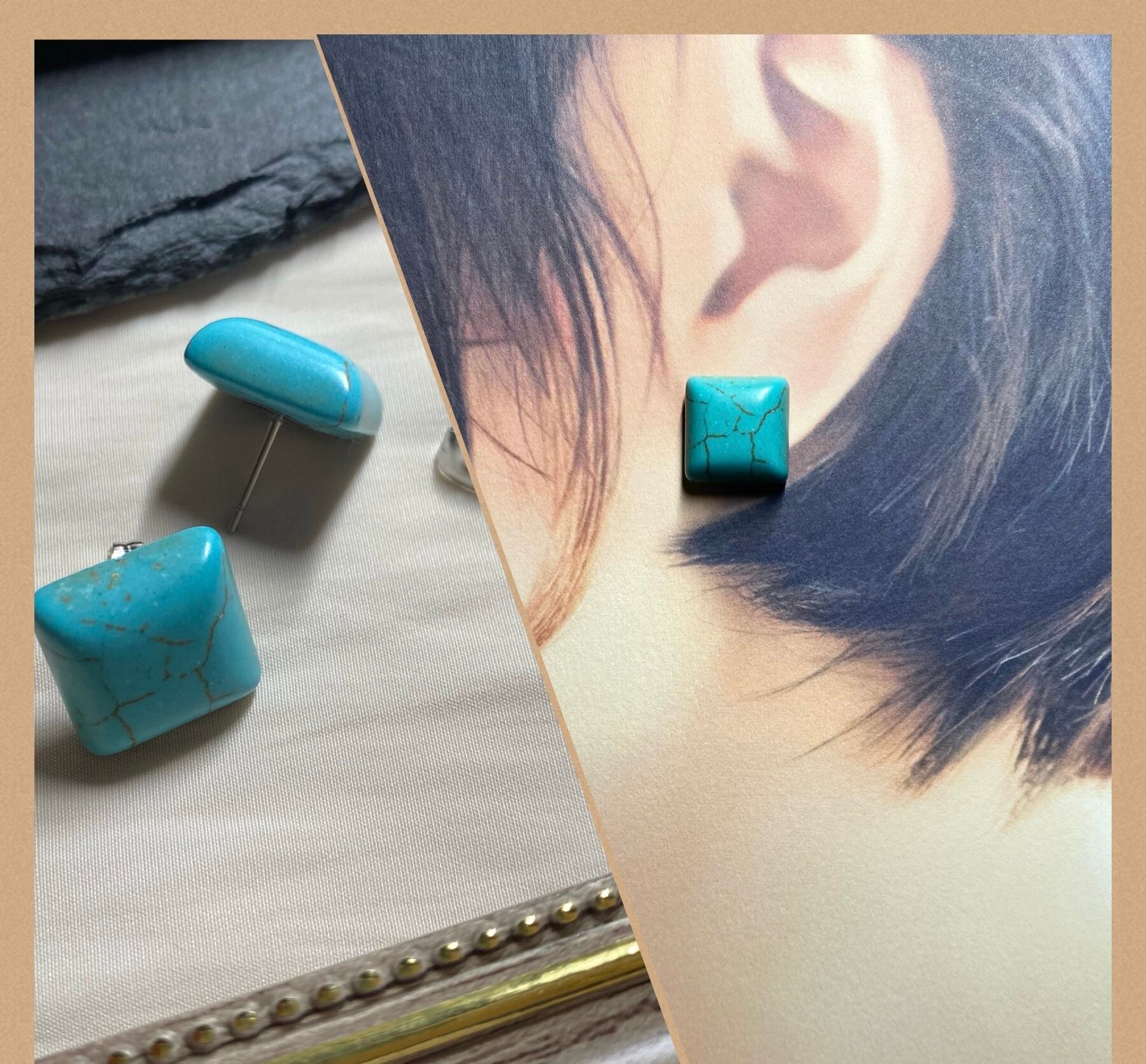 『スクエアターコイズ』イヤリング