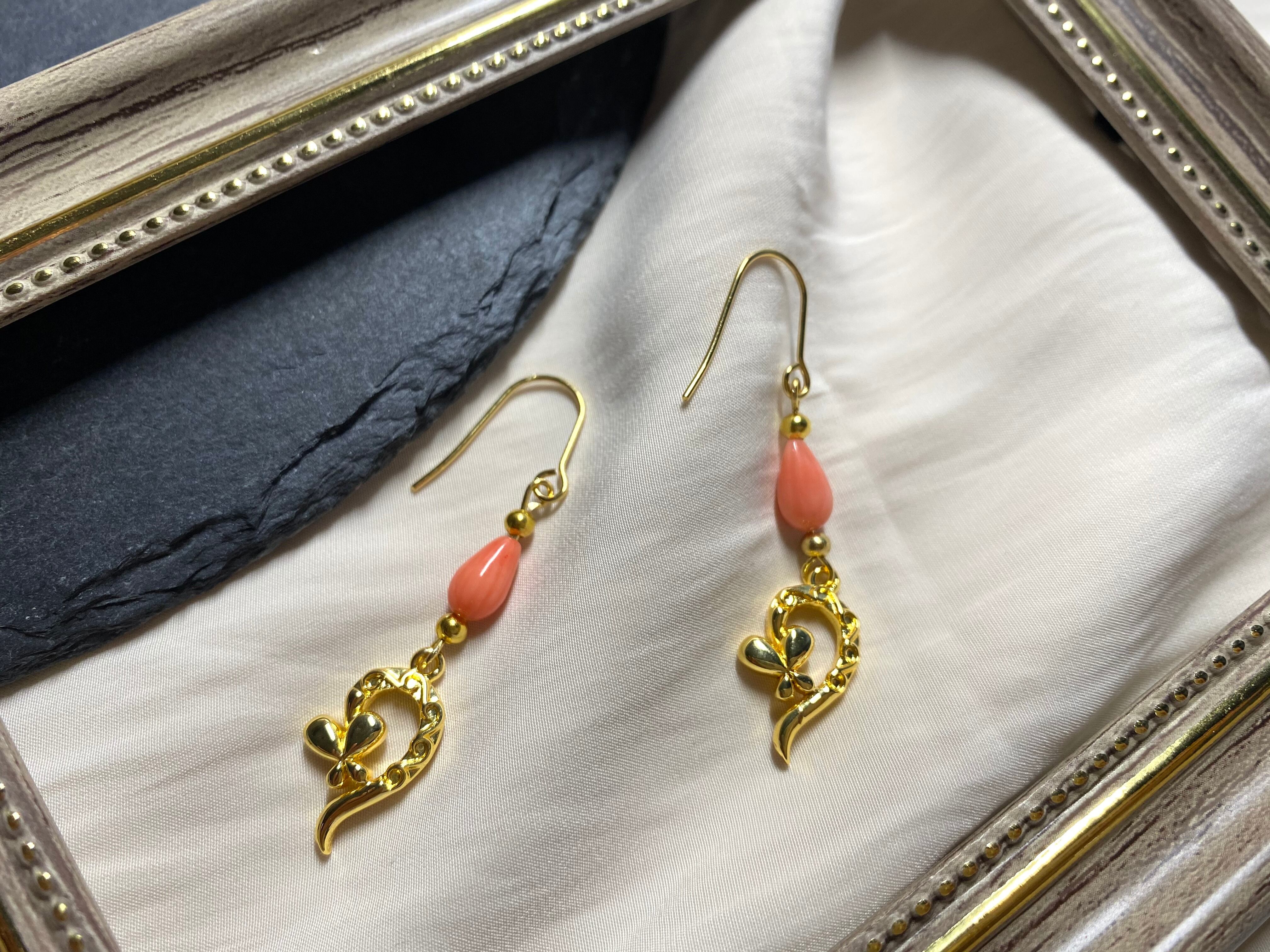 『ピンク珊瑚の耳飾り』ピアスイヤリング金属アレルギー対応金具