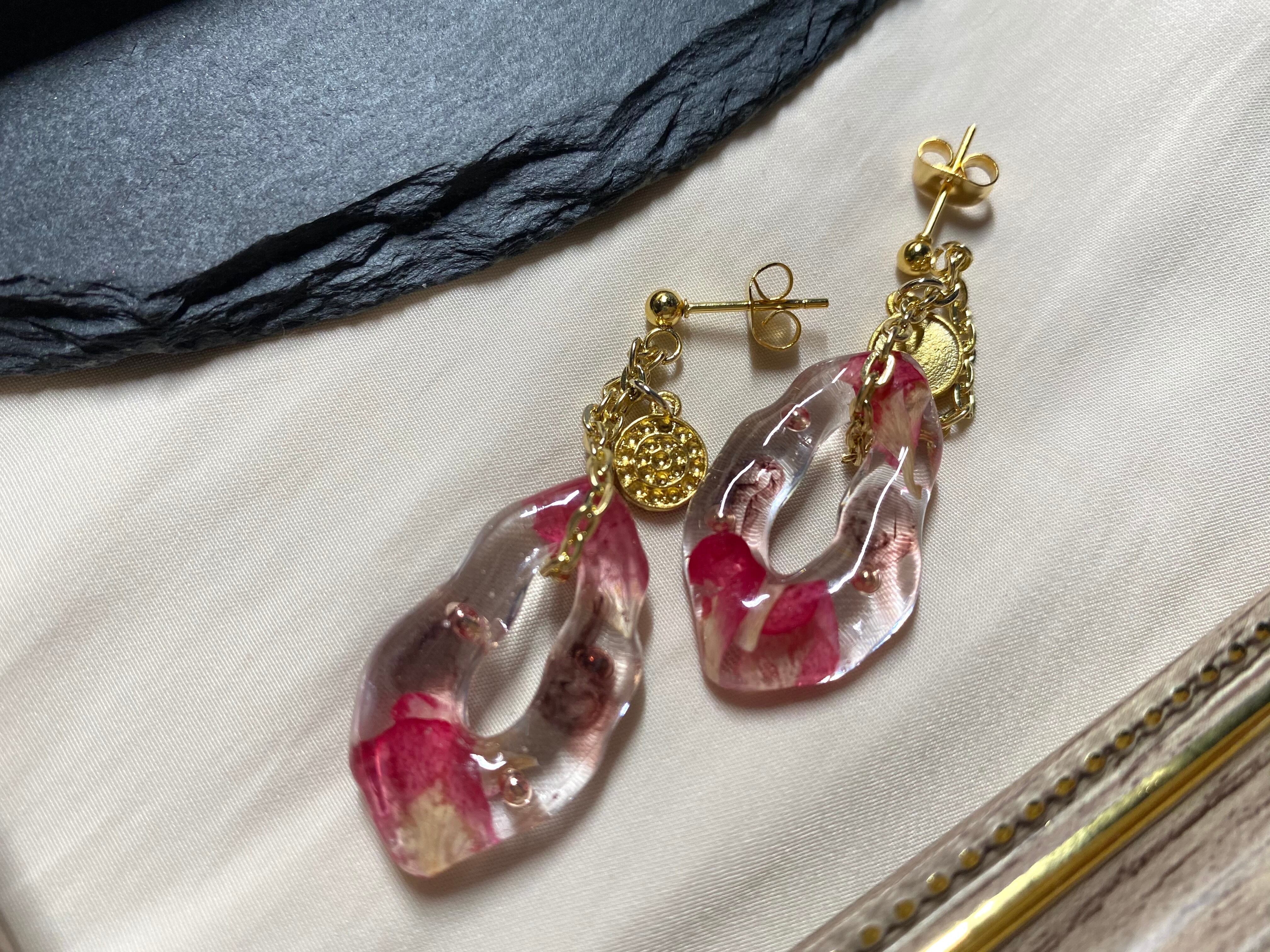 レジンの中に薔薇のドライフラワーを封入し、