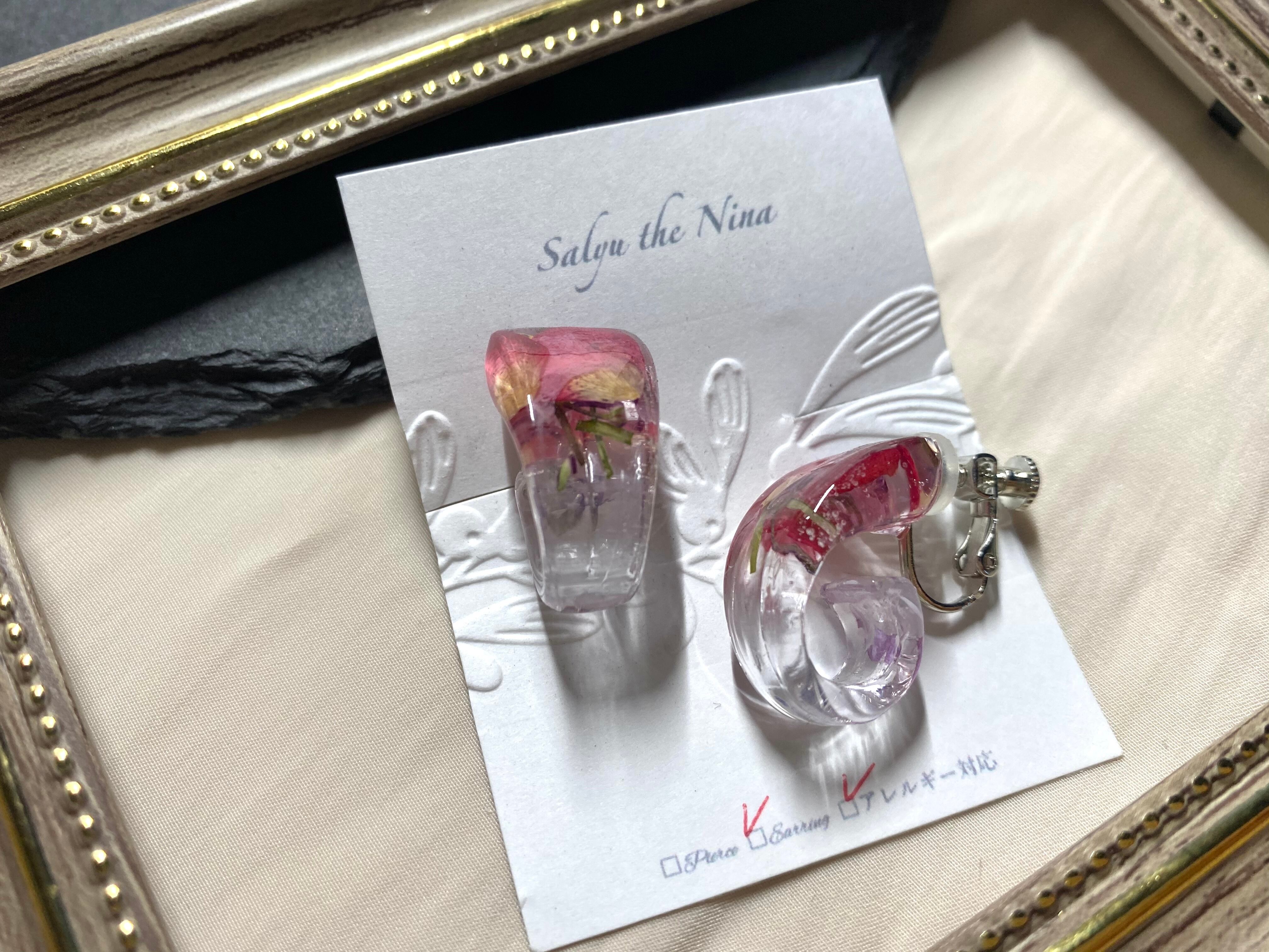 『変形リングの金魚草アクセサリー』イヤリング金属アレルギー対応金具