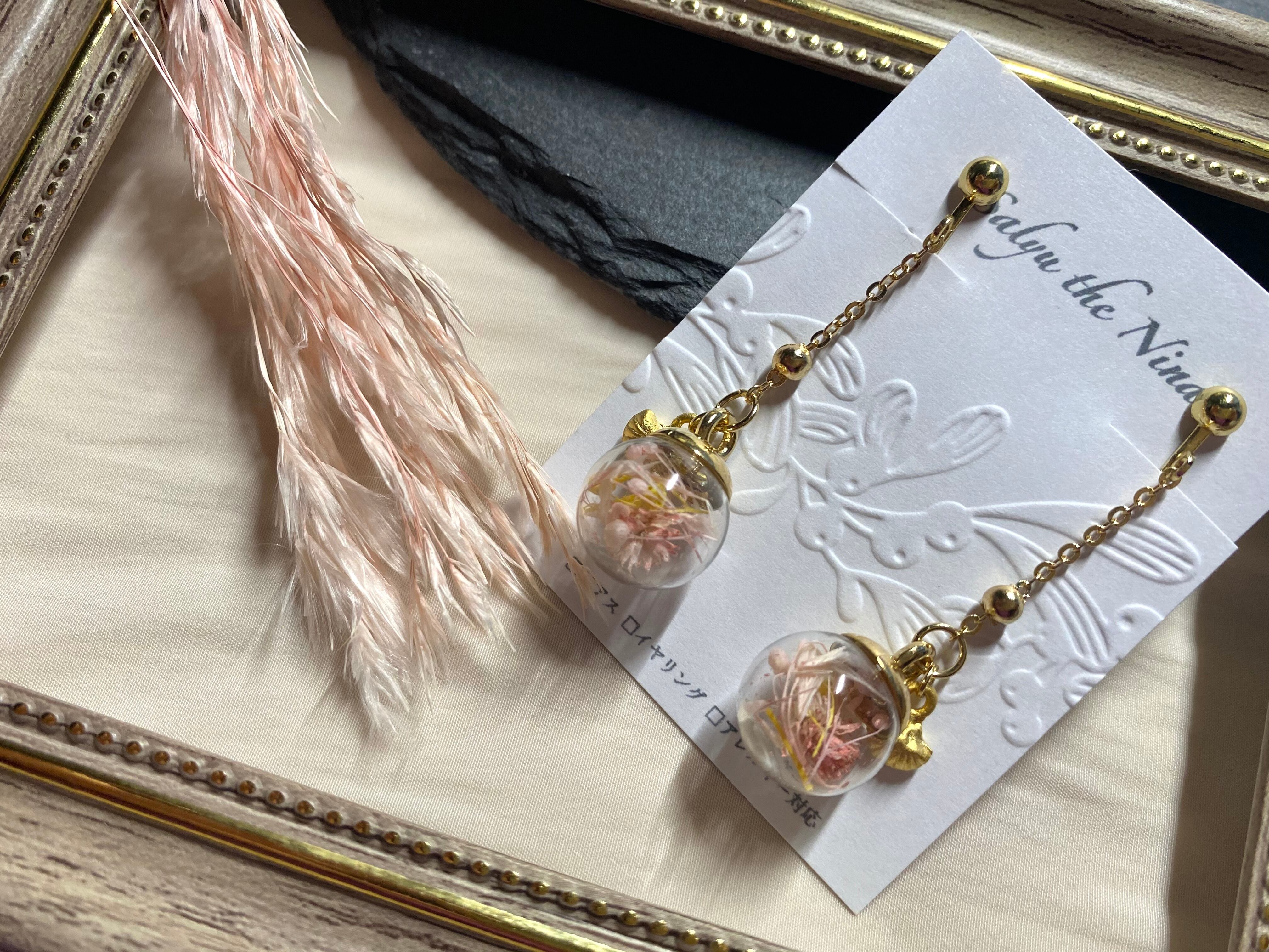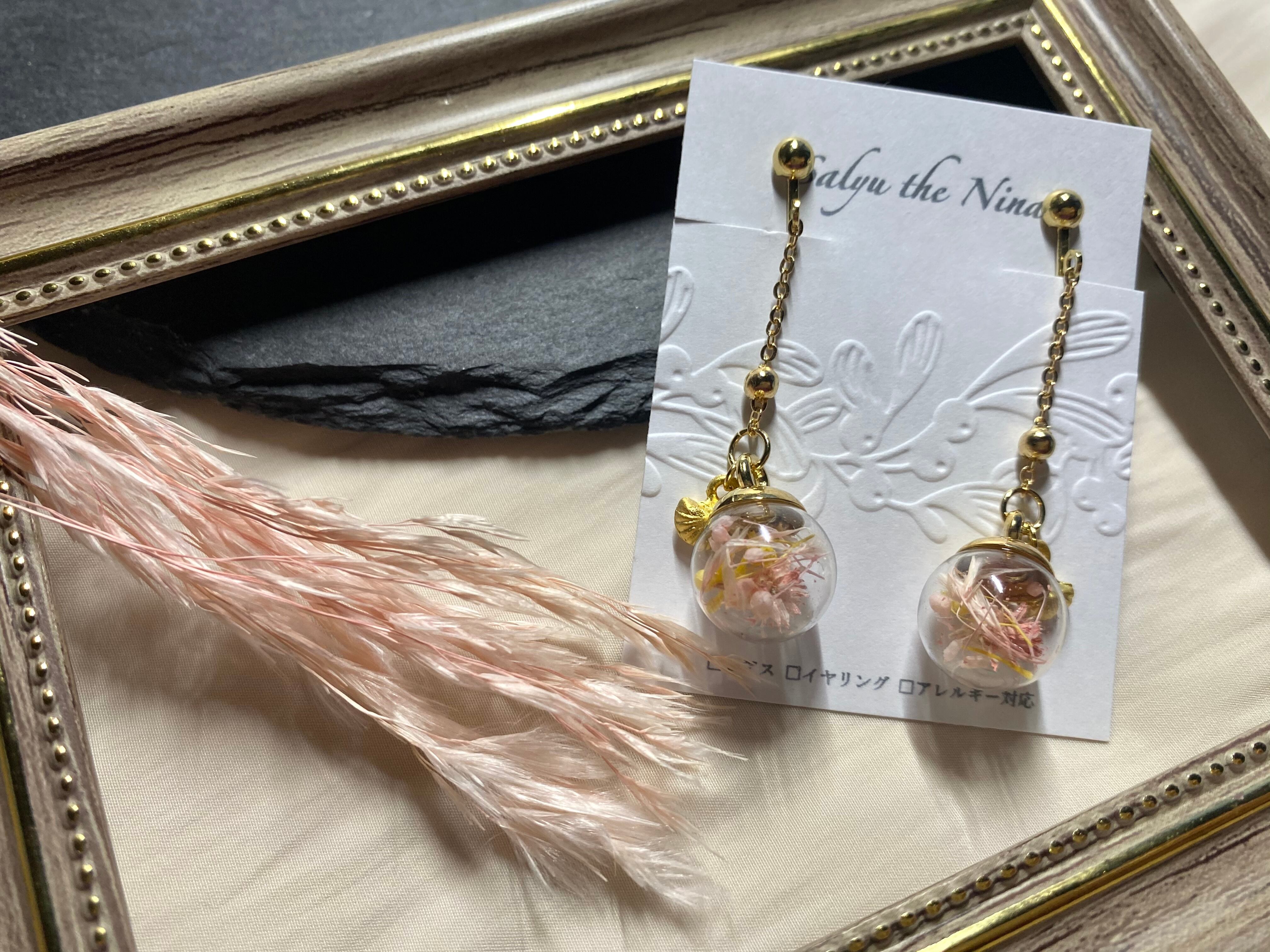 『ハーバリウム小瓶の耳飾り』ピアスイヤリング金属アレルギー対応