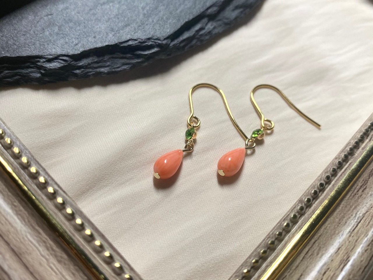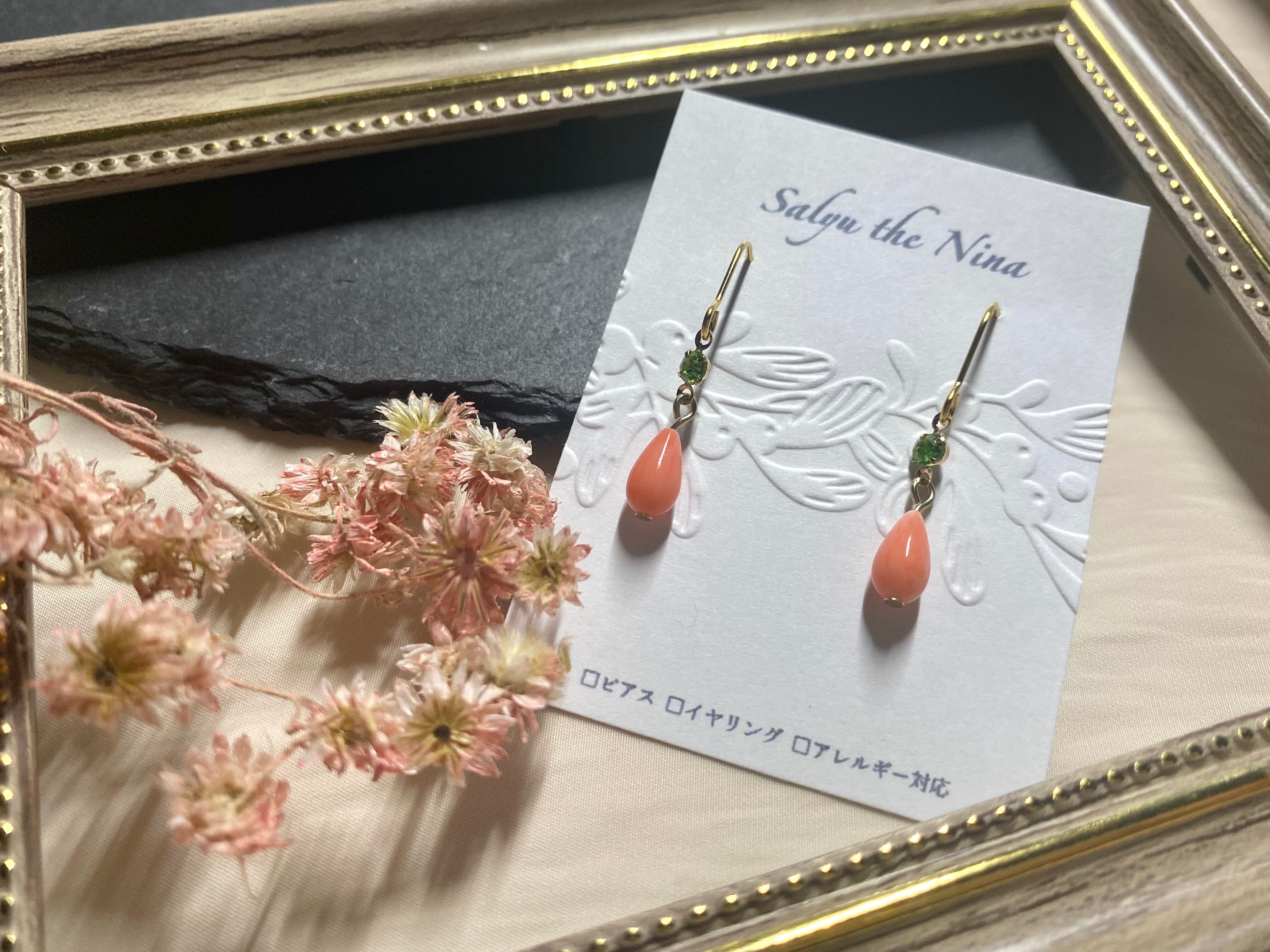 『ピンク珊瑚のアクセサリー』ピアスイヤリング金属アレルギー対応金具