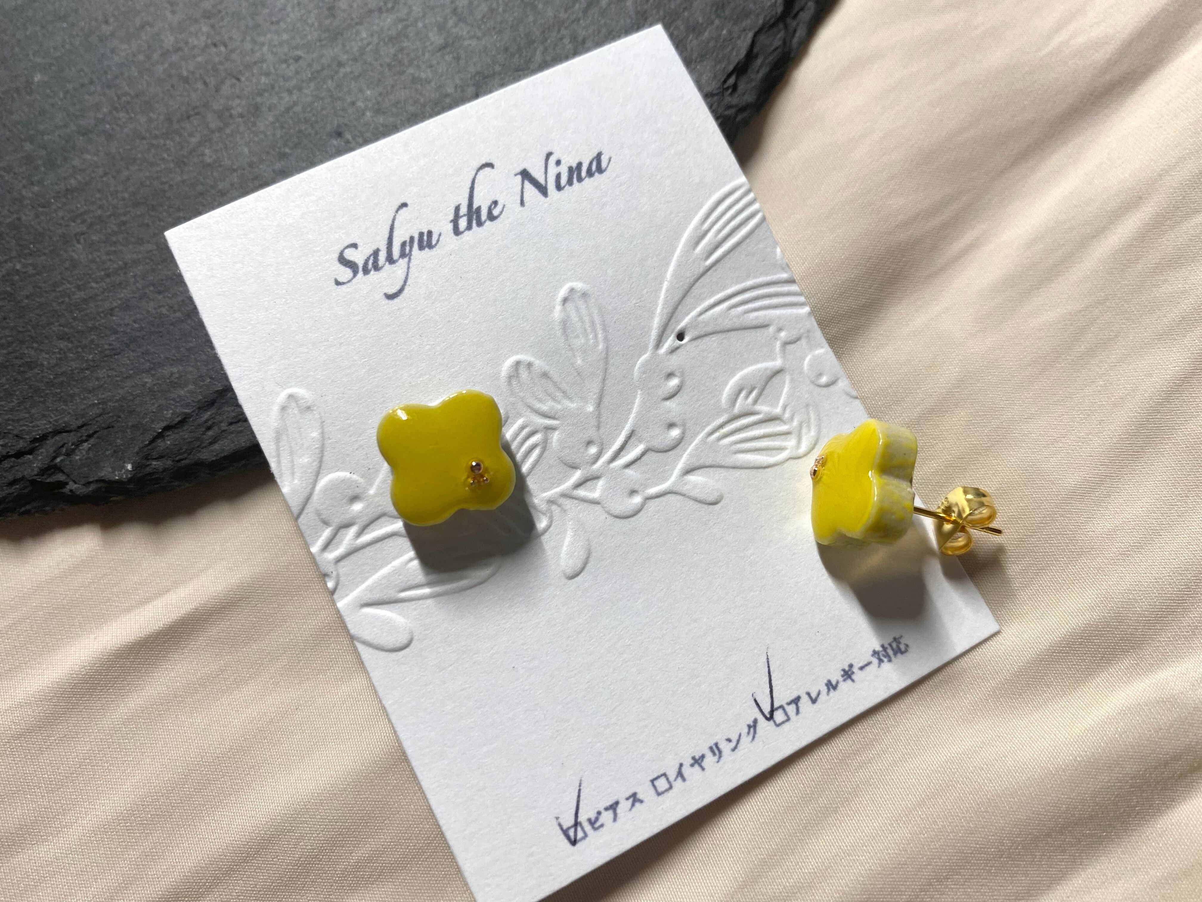 『美濃焼きアクセサリーレモンカラー』ピアス金属アレルギー対応金具
