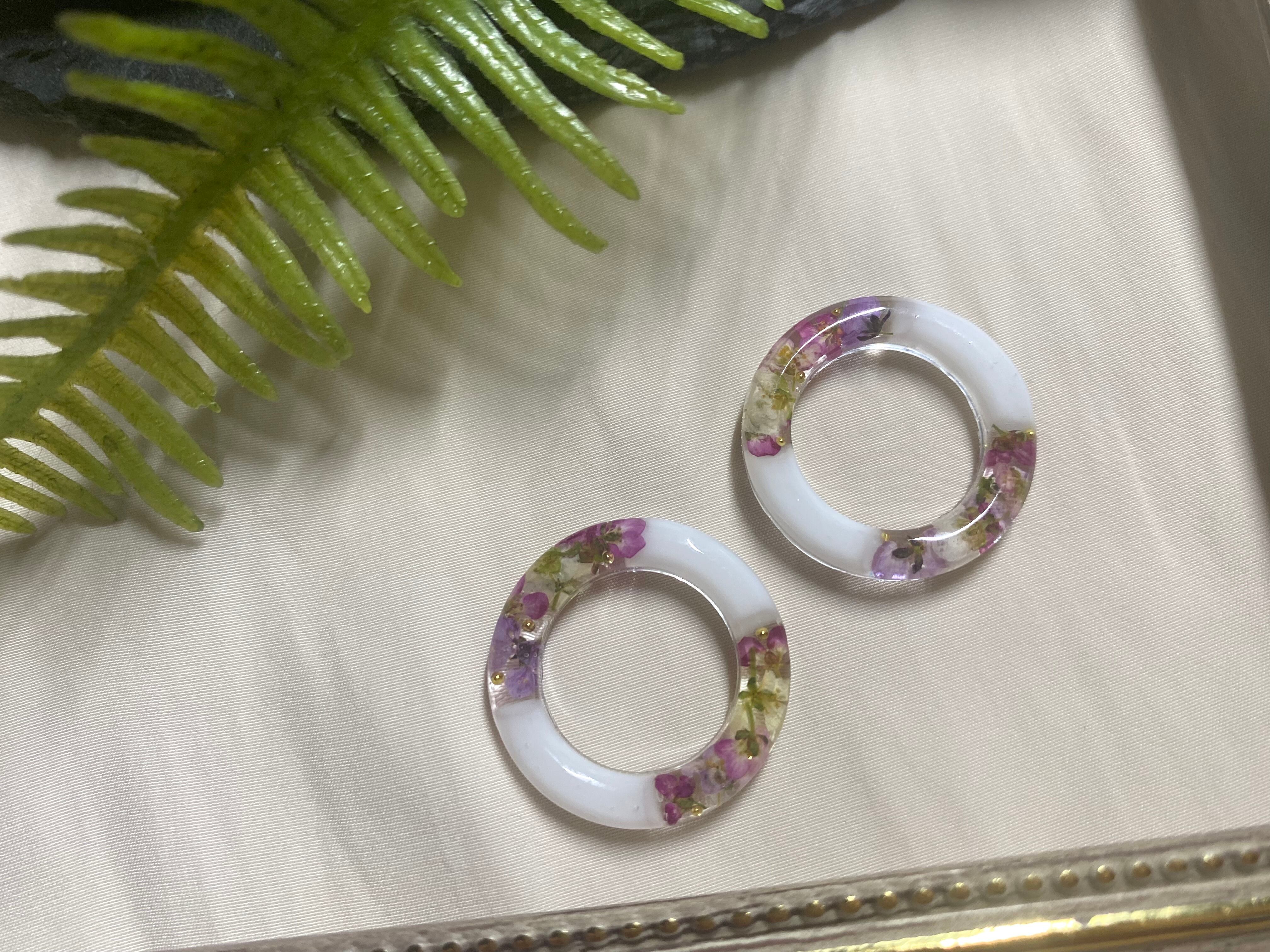 『丸型ボタニカルアクセサリー』金属アレルギー対応金具