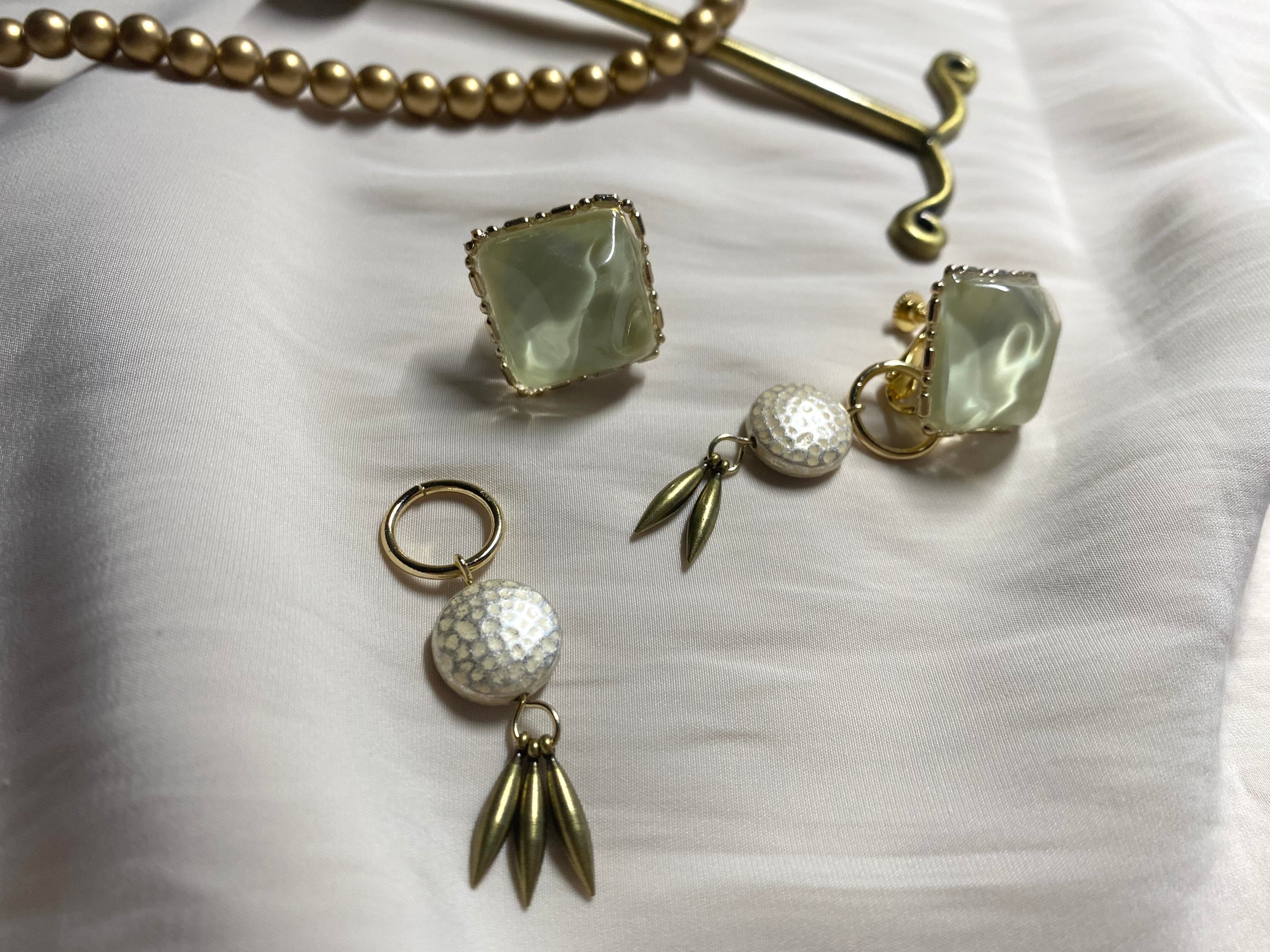 ハンドメイドイヤリング 春アクセサリー 花弁イヤリング