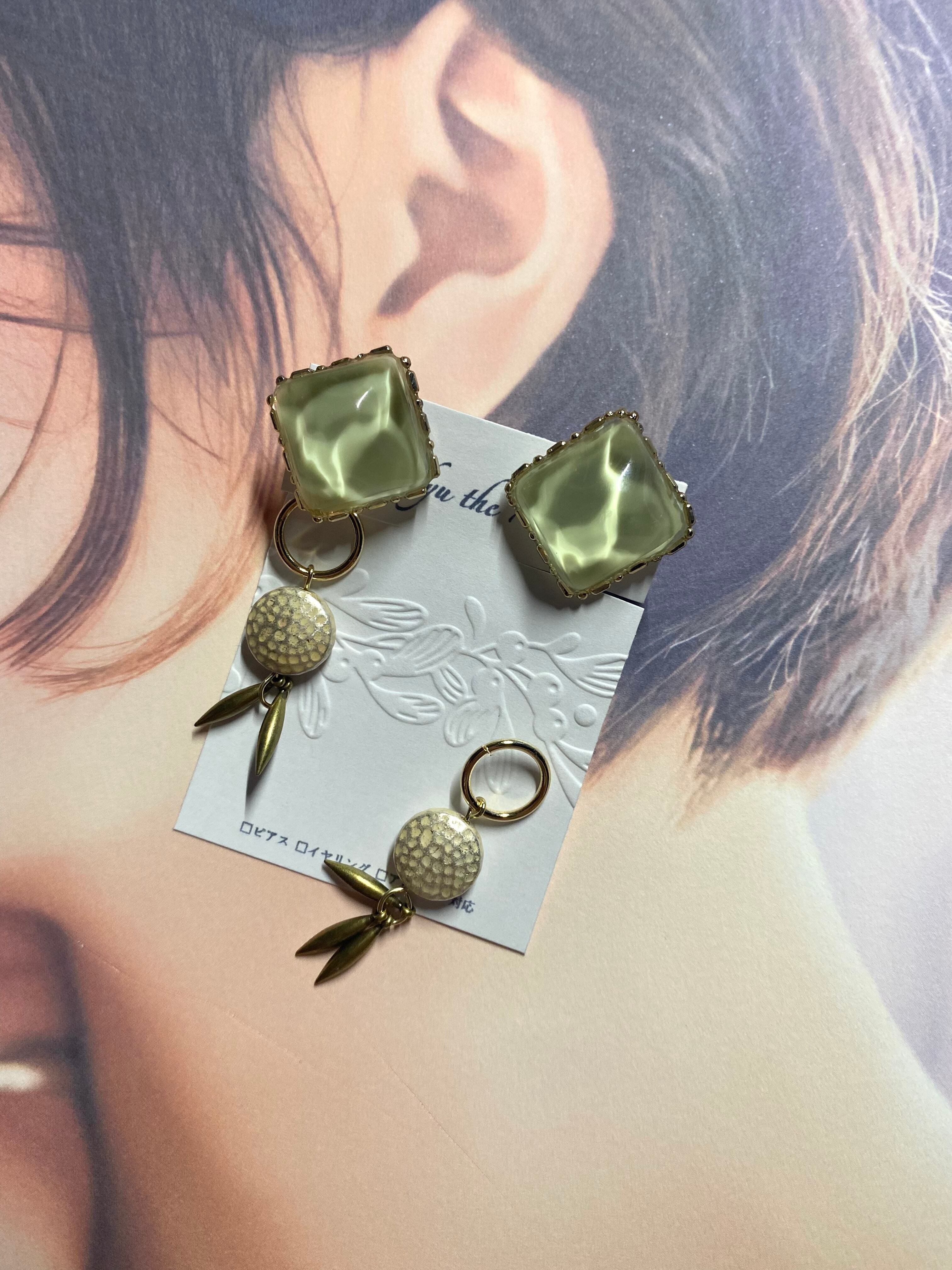 『2WAY水面カボションのアクセサリー』イヤリング金属アレルギー対応金具