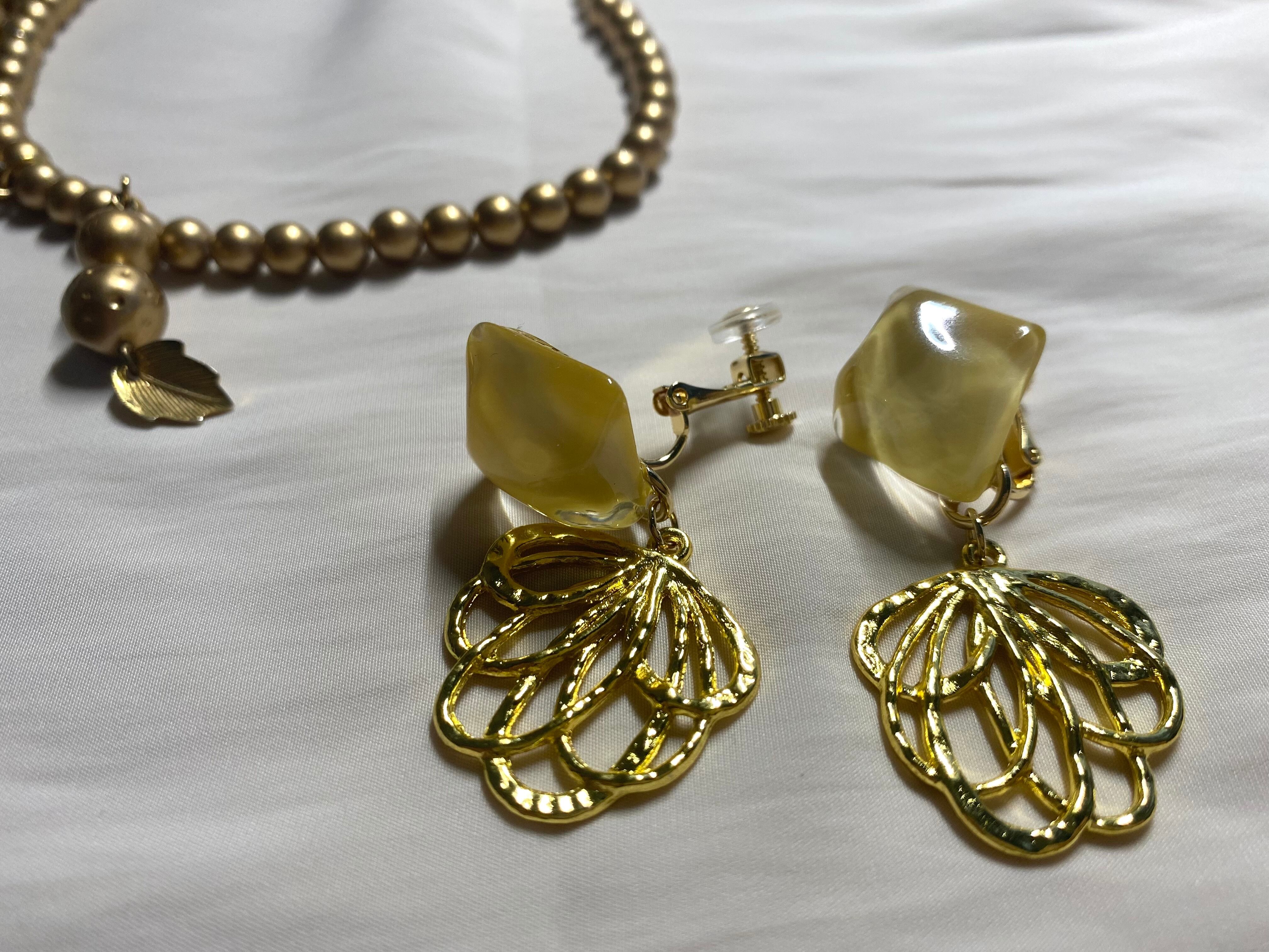 ハンドメイドイヤリング 春アクセサリー 花弁イヤリング